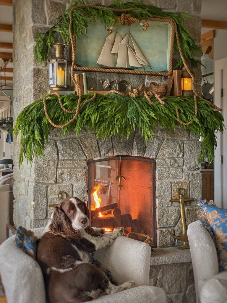 But I couldn’t deny that this image spoke to me. Somewhat surprisingly, it turned out to be exactly the spark I needed to create my own fireplace display — a coastal New England twist on this year’s Ralph Lauren Christmas.