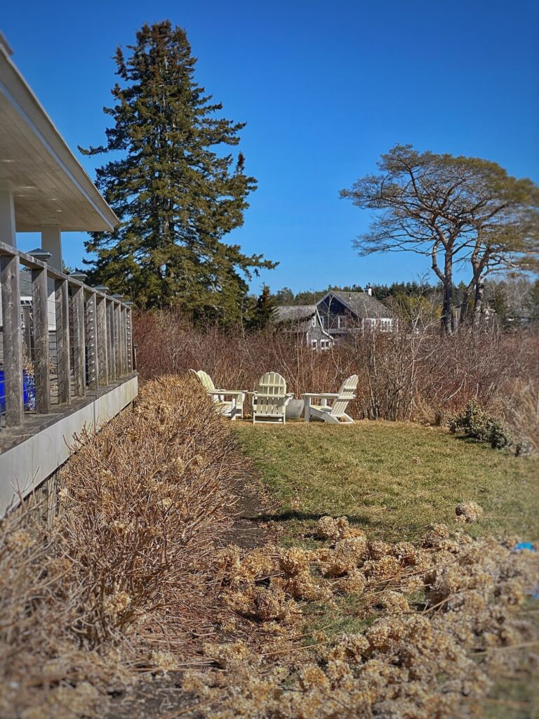 That meant it was the perfect time to cut back the limelight hydrangea hedge that runs along the base of the deck.