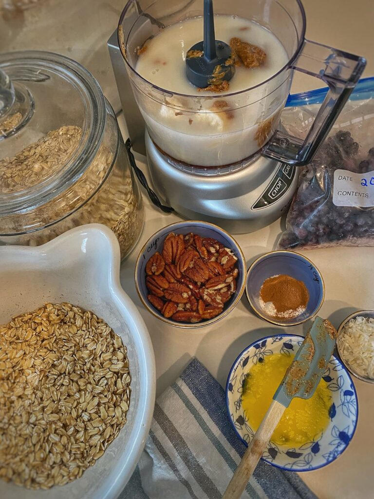 On weekends I love a hearty egg breakfast, but during the week I keep things more simple, with something that almost always includes oats.