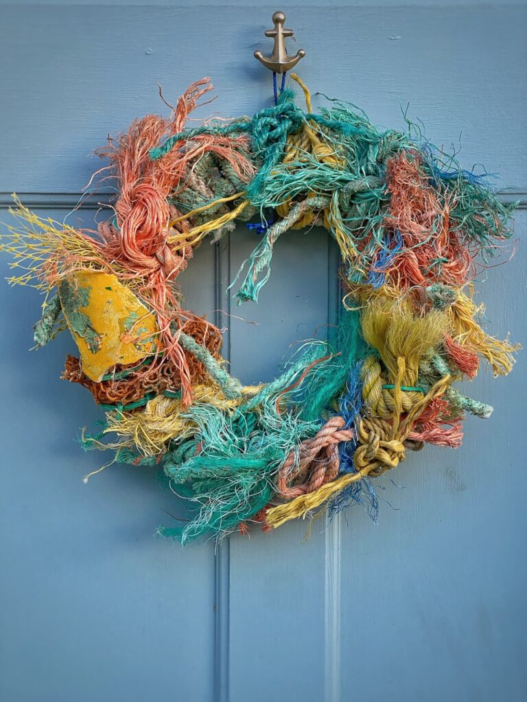 The show was filled with Maine artists and artisans, each booth brimming with creativity and color. Paintings, pottery, fiber art, jewelry—so many beautiful, original pieces, all inspired in one way or another by my beloved Maine coast. I picked up a few gifts and treated myself to a wreath made from old lobster rope with a small piece of buoy attached. How could I resist? It has MiM’s front door written all over it, fitting perfectly with my buoy and rope decor. The only issue? Choosing which one!