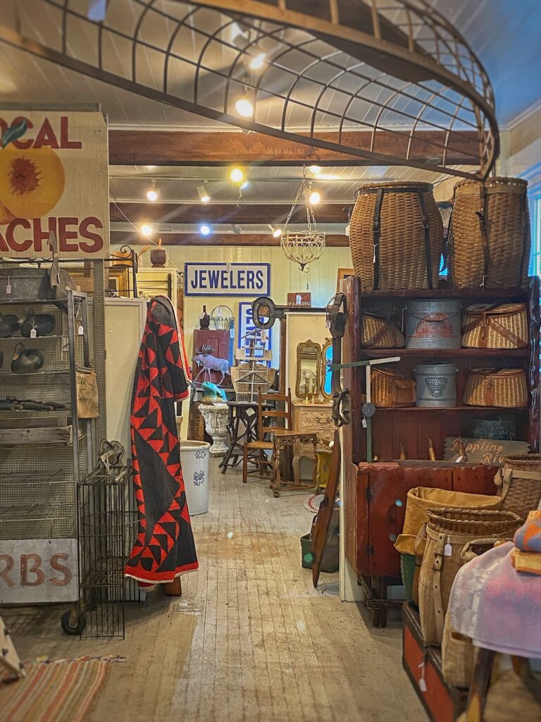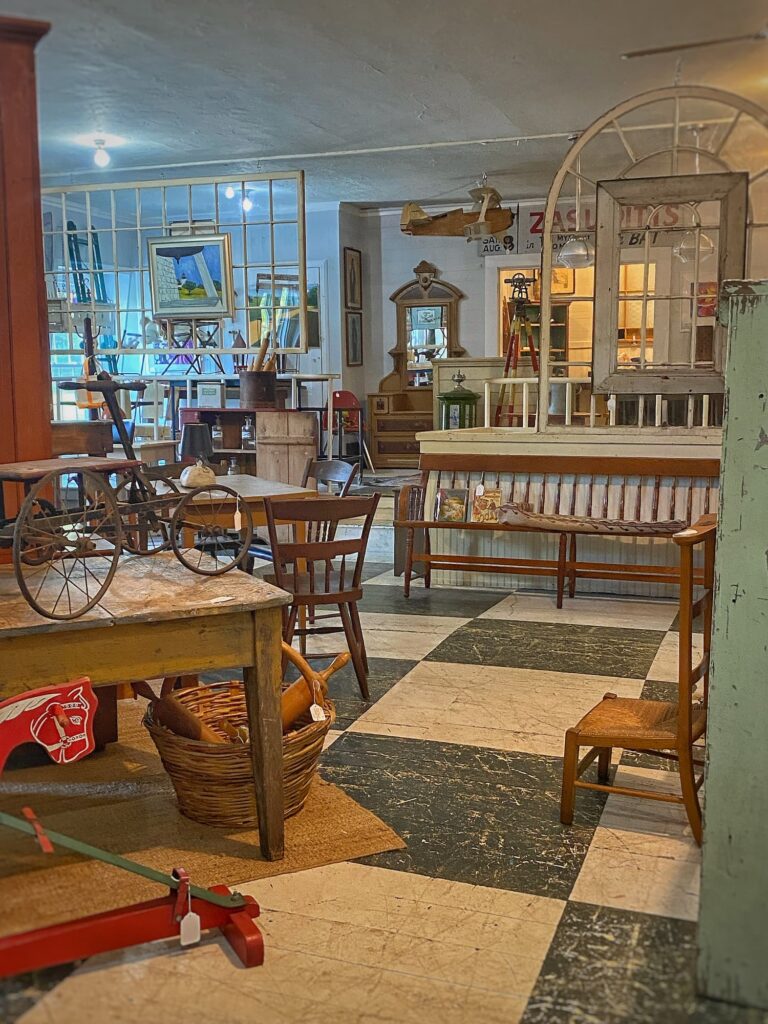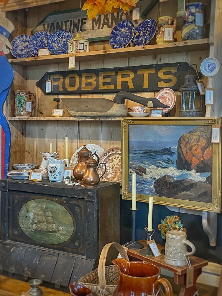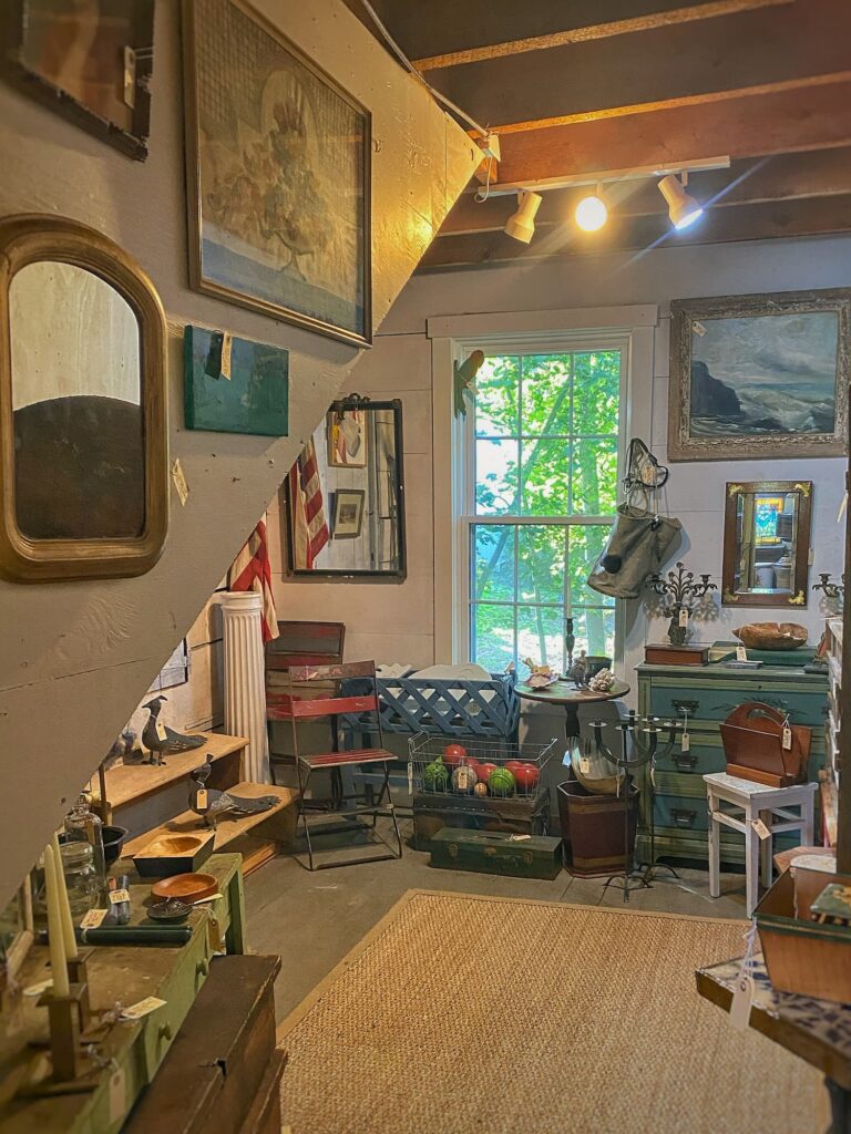Our main destination was the Cornish Trading Company — a three-story, multi-dealer antiques shop right in the heart of the village. Filled with everything from early American furniture to quirky country finds and architectural treasures, it’s a browser’s paradise. The booths were beautifully displayed, and I thought the prices were very fair.